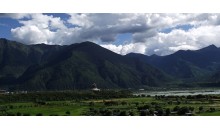 魯朗海拔3700米,位于距林芝地區八一鎮80公里左右的川藏路上,坐落在深山老林之中;這是一片典型高原山地草甸狹長地帶,長約15公里,平均寬約1公里。兩側青山由低往高分別由灌木叢和崐茂密的云杉和松樹組成“魯朗林?!保恢虚g是整齊劃一的草甸,崐猶如人工整治一般;草甸中,溪流蜿蜒,泉水潺潺,草坪上報春崐花、紫苑花、草梅花、馬先蒿花等成千上萬種野花怒放盛開,頗崐具林區特色的木籬笆、木板屋、木頭橋及農牧民的村寨星落棋布、崐錯落有秩,勾畫了一幅恬靜、優美的“山居圖”。