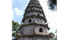 據清光緒《嘉應州志》載,由南漢王劉鋹始建于大寶八年(公元965年),距今已有一千多年歷史。鐵塔分為七層,身高4.2米,呈四方形,塔底邊長1.6米,為生鐵鑄成,每面鑄有大小佛像250個,四面合計為一千佛,故名千佛塔。原塔建于修慧寺,因寺毀,清乾隆初年嘉應州官王者輔將鐵塔移于梅城東巖山頂,上面蓋亭宇,周圍筑欄桿,并砌石階,以供游覽者登臨觀賞。