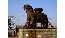 滄州鐵獅子位于滄州市政府駐地東南偏北16.5公里。坐落在東關村西0.5公里處。鐵獅身高5.78米,長5.34米,寬3.17米,體重約50噸。背負巨盆相傳是文殊菩薩蓮坐,獅身向南,頭向西南,兩左腳在前,兩右腳再后,呈前進狀,姿態雄偉,昂首闊步,徐徐如生鐵獅是我國大型的驚巧鑄鐵工藝。也是我國著名發源的古跡。