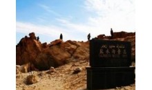 當峰回路轉之際,車前方忽現(xiàn)一座狀如巨廈的深駝色的山峰,似有廊有柱,有塔有亭,樓閣錯落,宛如"布達拉宮",令人詫嘆不軒。復前行,又見一色彩斑斕之奇峰,通體呈赭紅色,但另有絳紫、桃約、玫瑰紅、青綠、淡黃、淺灰、月白、深黛……的色塊、條紋。