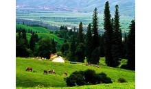 金絲特避暑山莊,位于新疆庫爾勒市和碩縣北紅山地帶那音克鄉(xiāng)的一個水草豐美的山間小盆地里。沿著崎嶇的山路前40公里左右,就可到達。這里草地如毯、牛羊成群、喇嘛調(diào)悠揚深遠;揚鞭縱馬,如入人間仙境。在這里,游人還可以盡情地感受到和碩特蒙古人古樸而濃烈的風情。一年一度的那達慕盛會更是熱鬧非凡,有醇香的奶酒、鮮美的手抓肉,還有古老悠揚的沙吾爾登彈唱,夏日有日吾爾賓館接待游人。