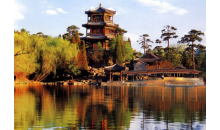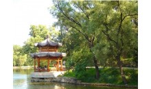 南山積雪亭位于山莊正北、青楓綠嶼南側(cè)的山頂上,是一處借景之作,為“康熙三十六景”第十三景。是山莊的制高點(diǎn)之一。 南山積雪亭為方形四角攢尖式敞亭,面積較大,在此可一覽眾峰。“南山積雪”是觀賞山莊初冬雪景為命題的一組苑景。塞北高寒,山莊之南,峰嶺環(huán)列,嶺上積雪經(jīng)久不消。登亭遙望,群山上的積雪“皓潔凝映,晴日朝鮮,瓊瑤失素”。直到初春時(shí)節(jié),仍是“不改冰霜積雪冬”的景象。