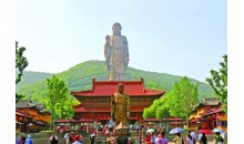 靈山大佛景區位于無錫太湖國家旅游度假區,占地面積約30公頃。從靈湖大型果園停車場步行至照壁廣場,可見三山環抱,靈山大佛巍然屹立,氣勢雄偉壯觀。大佛南面太湖,背倚靈山,左挽青龍(山),右牽白虎(山),地靈形勝,風水佳絕,為難得之佛國寶地。靈山大照壁可謂華夏第一壁,長39.8米,高 7米,正面“靈山勝會”石刻組雕,神仙道佛,千人千面,栩栩如生;背面為 “唐僧賜禪小靈山圖”。