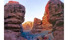 海森楚魯怪石城位于阿拉善右旗努日蓋蘇木境內,距旗府所在地220公里?!昂I敗睘槊烧Z音譯,意為象鍋一樣的石頭。在方圓二十余公里的地方,大到幾十立方,小到拳頭大小的風蝕原石隨處可見, 怪石林立,形態各異,有象臨空欲飛的碩大雄鷹,有象“蘑菇云”……各式各樣,栩栩如生,與云南石林,黃山怪石相比也并不遜色,使人感到大自然神賜般的無窮魅力。