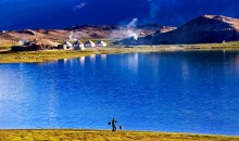 卡拉庫里湖位于冰山之父——慕士塔格峰的山腳下,距離喀什191公里,中巴公路從湖畔經過,這里離攀登慕士塔格峰的大本營不遠(徙步走或騎駱駝,5小時到達)。